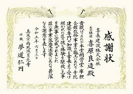手書き毛筆での賞状