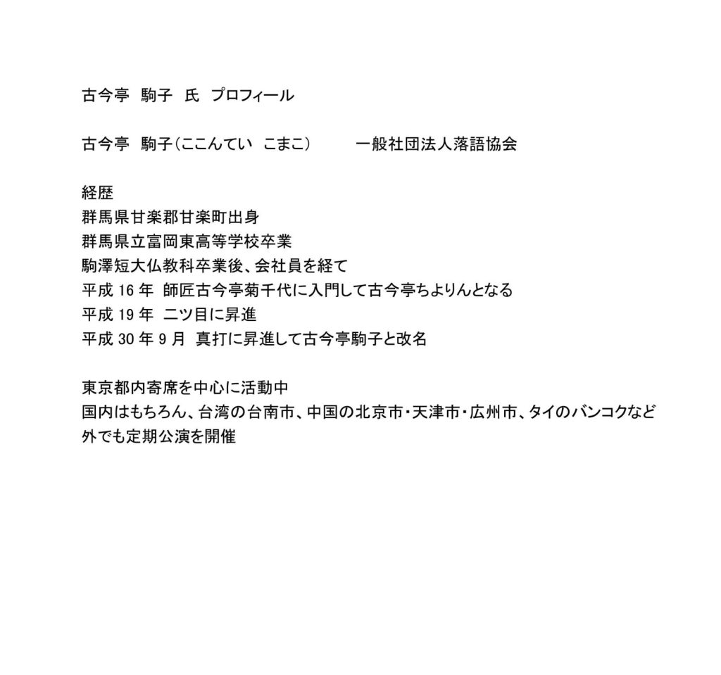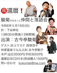 古今亭 駒子古今亭 古今亭駒子「ギンギラボーイ(三遊亭白鳥作)」古今亭菊千代「星野屋」ほか古今亭 |古今亭 寄席チャンネル古今亭 古今亭菊千代【寄席チャンネルSELECT】を観る古今亭 |古今亭 Prime古今亭 Video古今亭 ウルルJUN~古今亭 on古今亭 X:古今亭 ☆5月19日(日)祝・還暦古今亭 古今亭駿菊ゆるっと仲間と落語会「下谷神社」古今亭 ◯開場古今亭 13:00古今亭 ◯開演古今亭 13:30古今亭 出演: