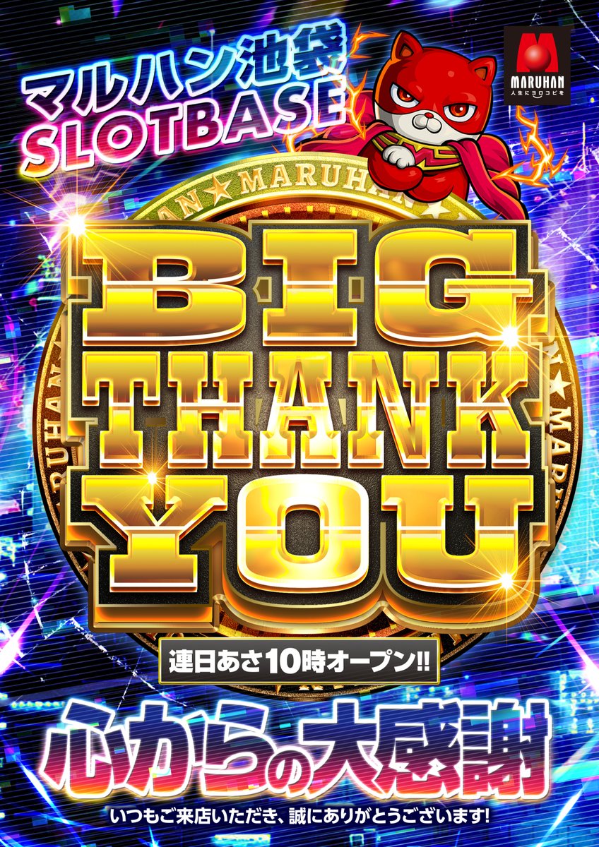 ![公式】マルハン池袋SLOT_BASE on X: 🎰SLOT BASE🎰 ~営業時間のご案内~ 🚥1月19日[日]🚥 🌈あさ10時オープン🌈 🎁都遊協ファン感謝デー🎁 1月17.18.19日は 「パチパチラッキー」開催! ⏰入場抽選⏰ ⏰9時15分開始⏰ 🆙店長ポストはコチラ🆙 @maruiketentyou ご来店 ...](https://i0.wp.com/pbs.twimg.com/media/GhhzRtcacAIj6td.jpg?ssl=1)