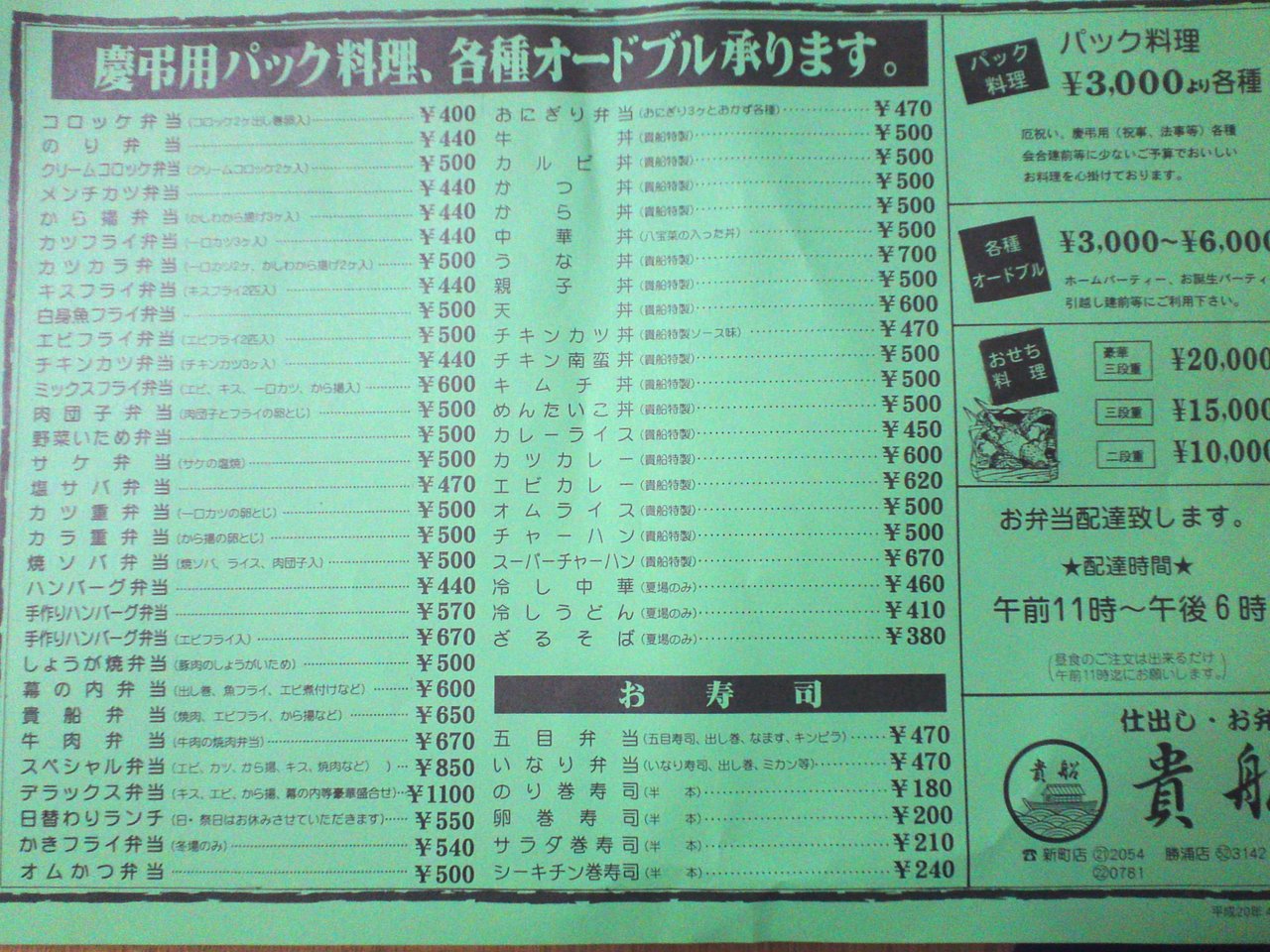 札幌市で仕出し弁当配達・宅配・デリバリー