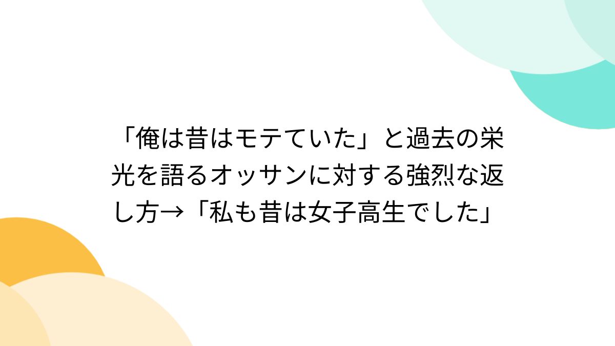 ![俺は昔はモテていた」と過去の栄光を語るオッサンに対する強烈な返し方→「私も昔は女子高生でした」 - Togetter [トゥギャッター]](https://i0.wp.com/s.tgstc.com/ogp3/729365e267ff2bd28c71d0c0662c2b71-1200x675.jpeg?ssl=1)